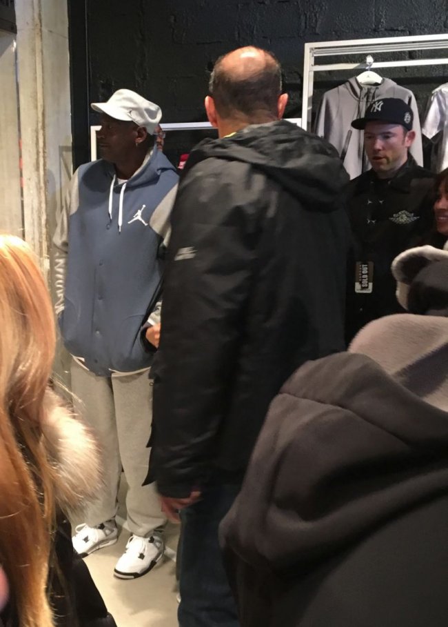 Michael Jordan 今天到访多伦多的 Pop-Store 店铺,而帮主脚上则穿着了今天发售的白水泥 Air Jordan 4 OG “White Cement”。这双在 1989 年他就穿过的球鞋,再度以 100% 的元年装扮呈现,不知是否也勾起了帮主本人的美好回忆。