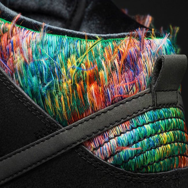 鞋舌骷髅头和鞋头的双刀标志,都表明了它的海盗身份,而鞋帮后跟的多彩丝线装饰则缤纷夺目。整体以低调的黑色鞋身搭配银灰 3M 反光 Swoosh,采用红色的外底托衬。