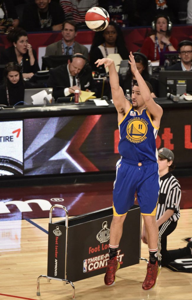勇士队的水花兄弟无疑是本届三分大赛的焦点人物,在今天的最终对决中,汤普森投出了逆天的 27 分,平了库里在去年创造的记录,夺得冠军,而库里则仅得 23 分。