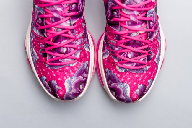 明天将有一款杜兰特全新配色球鞋发售,经典的 Aunt Pearl 现身 KD 8 八代签名战靴,依然是以绽放的蔷薇花覆盖鞋身,带来精彩非凡的视觉冲击力。 我们再在发售之前,带来这双球鞋的美图近赏,提前感受一下 Flyweave 编织鞋面带来的强大视觉表现力,蔷薇图案的精美,粉色系的夺目效果,以及 KD 8 鞋型的活力显现,完美的融合,带来一场视觉的惊艳盛宴。 货号:819149-603 发售日期:2 月 22 日 发售价:¥1299