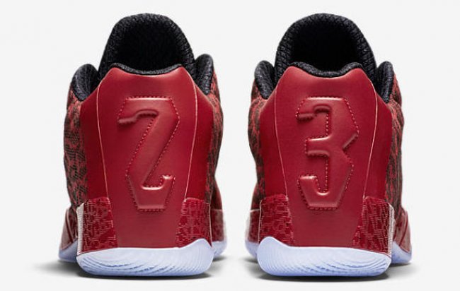 以红色的整体基调注入黑色细节点缀,黑色的鞋舌分别呈现了 Jumpman Logo 和 Jimmy Butler Logo。