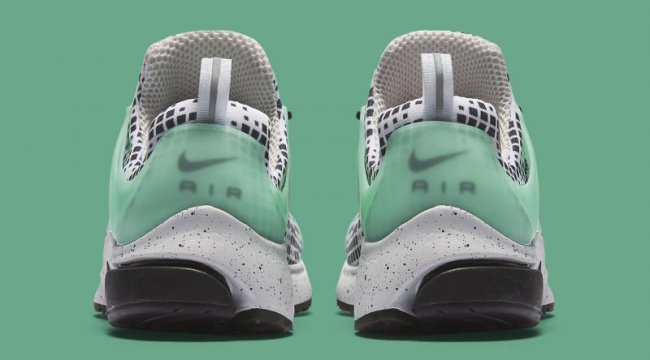 Air Presto 持续带来新配色的同时,也不断的呈现出更多的视觉主题。此款 Nike Air Presto GPX “Green Glow” 以全新的像素纹理全鞋面覆盖,鞋头和鞋身采用了夜光绿的硬质框架包裹,中底则以零星泼墨相伴。在凸显视觉张力的同时,精细的细节处理则为这双经典运动鞋款增添了更多值得玩味的亮点。 货号为 819521-103,预计将在春季发售。