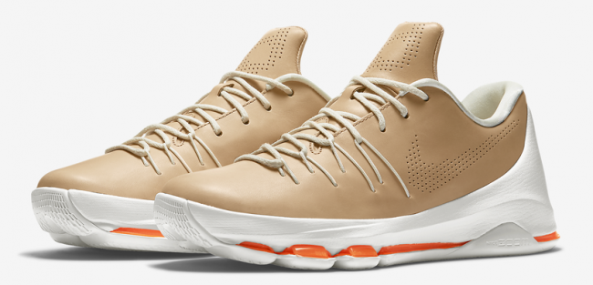KD 8 EXT 休闲鞋型正式登场,首款配色以棕褐的皮革原色带来一款休闲味道浓厚的 KD 8 EXT “Vachetta Tan”。 一体化的皮革鞋身,以冲孔方式呈现了鞋身 Swoosh 和鞋舌的 KD Logo,新颖之余又以简约感受保持了鞋身风格的一致性。以白色中底和橙红色的开窗气垫点缀,KD 8 的完美鞋型元素得以保留。 货号:806393-200 发售日期:3 月 5 日