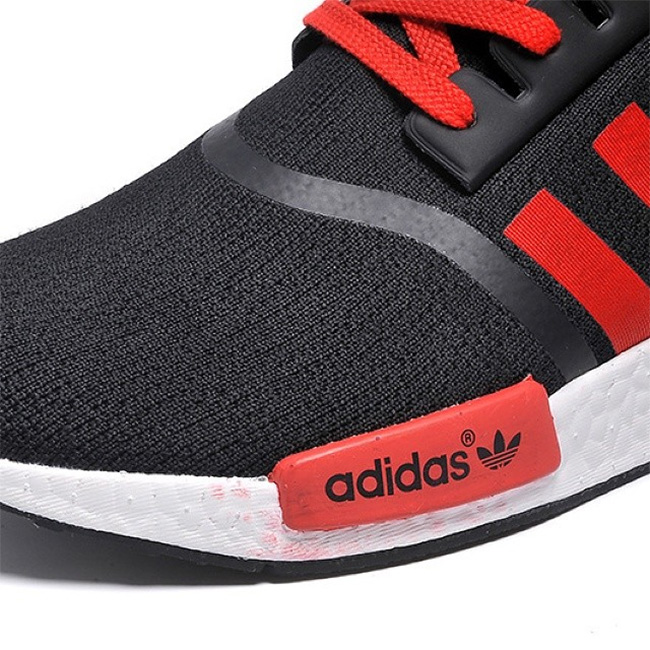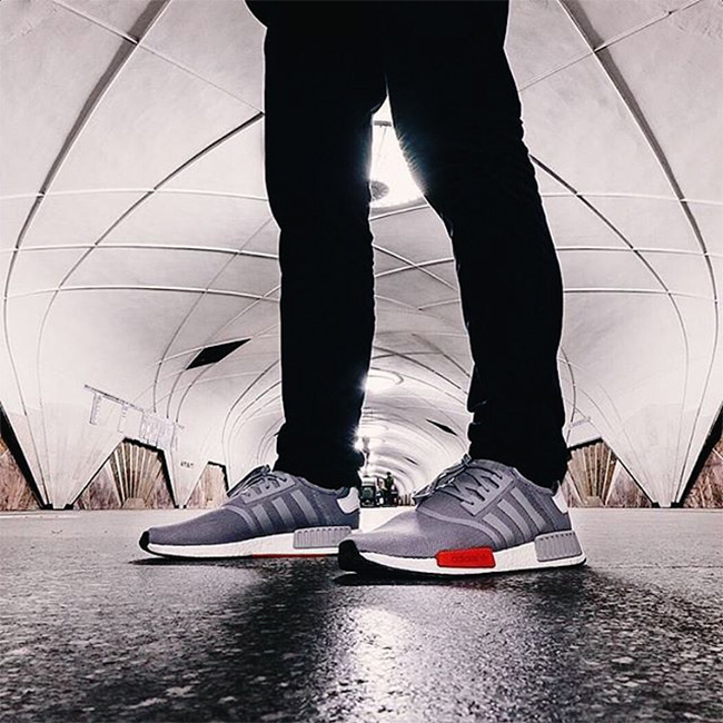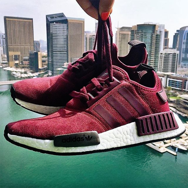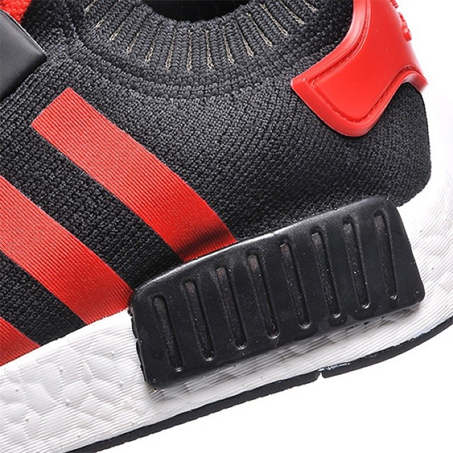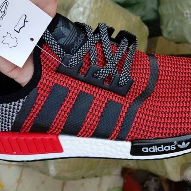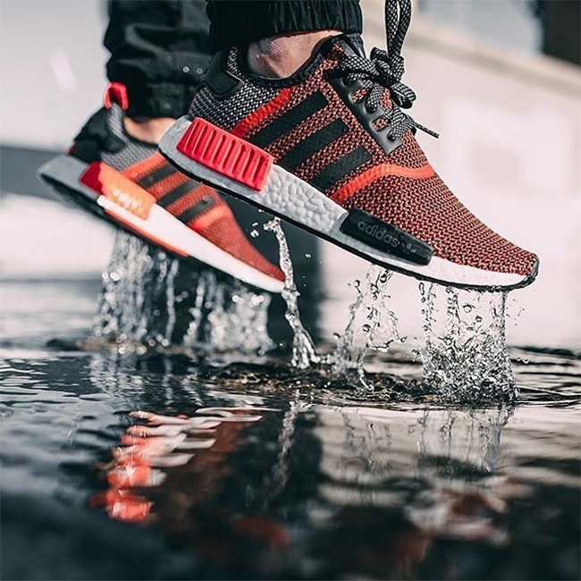 以全红鞋身装饰黑色细节,这一款的鞋面材质颇具特点!应该是头一次看到这样的质感在 NMD 上呈现。
