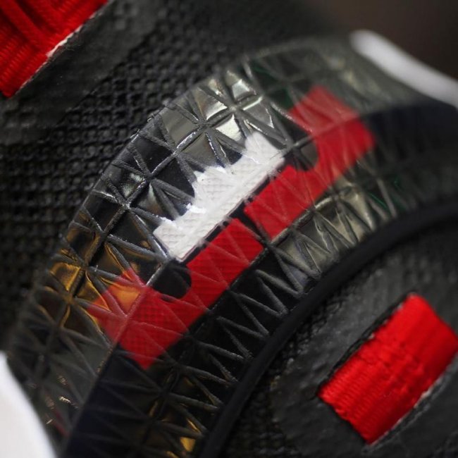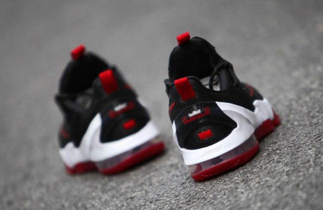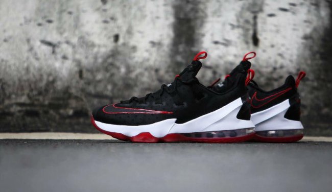 从外观上看,LeBron 13 Low 不仅带来了 Air Jordan 11 的鞋带设计,中底轮廓还颇有 KD 战靴的影子。而这双黑红配色的 LeBron 13 Low “Bred” 则带来了 Air Jordan 11 “Bred” 的近似感受。