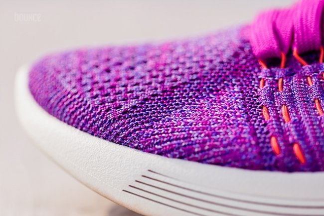 眼前这双 Nike WMNS LunarEpic Flyknit “Fuchsia Flash” 为喜爱运动的女生带来一款专属配色,在全新的登月跑鞋 LunarEpic 鞋型基础上,以罗兰紫的 Flyknit 编织面料打造整体鞋身,细节的 Flywire 动态飞线则以橙红色点缀,白色外底以橙色的线条勾勒,鞋底的靓丽色彩在抬脚的一瞬间也能带来亮点的迸发。 货号:818677-500