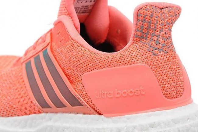 UB 系列的进化鞋型 Ultra Boost ST 带来一款女生专属的全新配色,这双 adidas Ultra Boost ST “Sun Glow” 简化了原本的鞋身硬质框架,依然是鞋帮的三条杠装饰,白色的 Boost 中底托衬带来十足的运动活力。细节之处 3M 反光元素的点缀让夜跑更加的安全,同时也注入了更多的亮点闪现。
