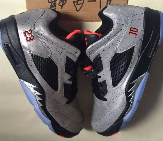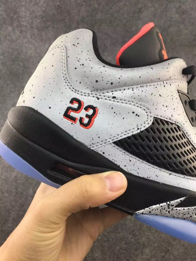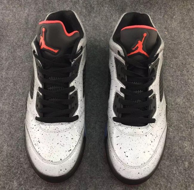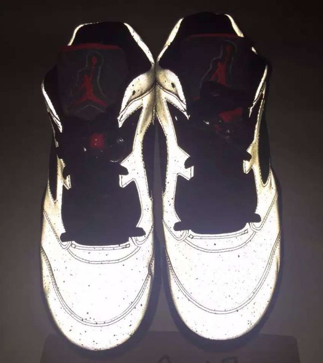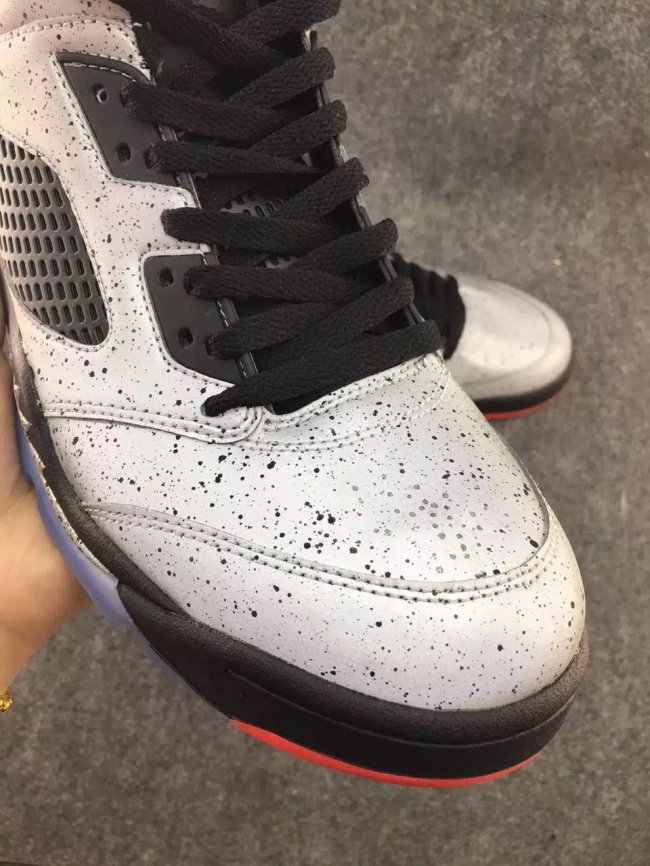 这双 Air Jordan 5 Low “Neymar” 首先以水泥灰装扮的整体鞋身搭配黑红细节取得了非凡的第一视觉效果,而整个鞋面都以 3M 反光效果覆盖,其耀眼的光亮效果是在让人难以回避!