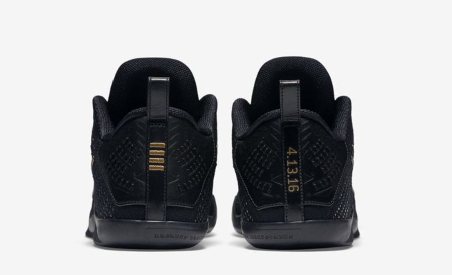 以全黑鞋身标志着科比职业生涯的尾声,又以金色的细节装饰,致敬黑曼巴伟大而曲折的大师之路。黑金配色的 Kobe 11 Elite Low FTB “Black Mamba” 以十足的荣耀气息现身,简约大方的黑金搭配,后跟在呈现金色四条伤痕的同时,也带有 4.13.16 的发售日期,同时将是科比最后一场的告别之战。 货号:869459-001