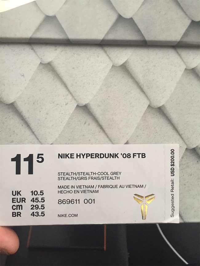 同样是 FTB 系列成员,诞生于 2008 年的科比奥运战靴 Hyperdunk ’08 无疑也是一款颇具科比气息的经典球鞋。 Hyperdunk 08 将在今年正式带来一大波复刻配色,而这款 FTB 配色也将以纯色系的外观,致敬黑曼巴的辉煌职业生涯。 目前国内的发售刚到 Zoom Kobe 4,这款 HD 08 FTB 的发售还要等上一段时间,我们带来最新的实物图片,经典的外观,细节上以 3M 反光元素装饰。 货号:869611-001