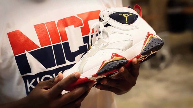 又逢奥运年,经典的奥运配色 Air Jordan 7 将在今年再度现身,不过不再是之前的装扮,而将采用全新的配色方案。同时也被称作为 Air Jordan 7 “Tinker Alternate”,因为这款全新的 2016 奥运配色有了 Tinker Hatfield 的参与设计,继之前带来效果展示图后,实物图片终于浮出水面,带来谍照的初次曝光。