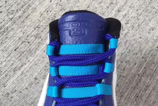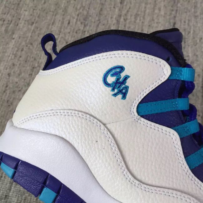 以白色鞋身背景注入经典的蓝紫色装扮,极为熟悉的黄蜂队氛围,这也是今年黄蜂专属配色投入市售的其中一款。