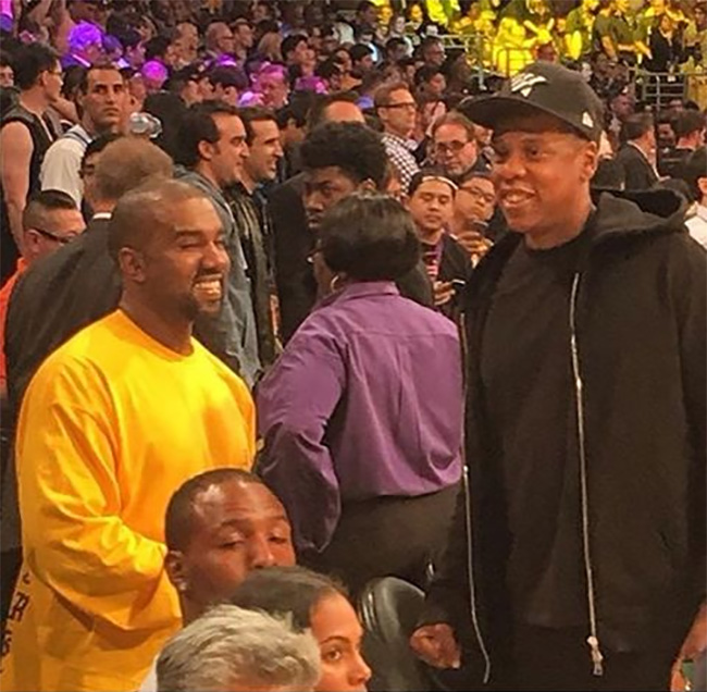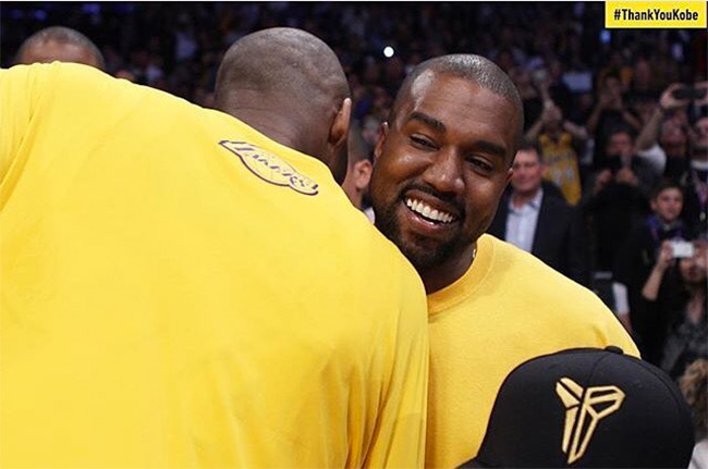 今天的斯台普斯中心人山人海,自然也聚集了众多的明星大腕,包括 Jay-Z、贝克汉姆、Kendrick、Kanye West 都到现场观战,亲眼见证伟大传奇的辉煌落幕。 侃爷自然不能上脚黑金配色的 Kobe 11 Elite Low FTB,所以他以一件抢眼的黄色上衣,表达了对于科比的敬意,而鞋款则搭配了 Yeezy 750 Boost。