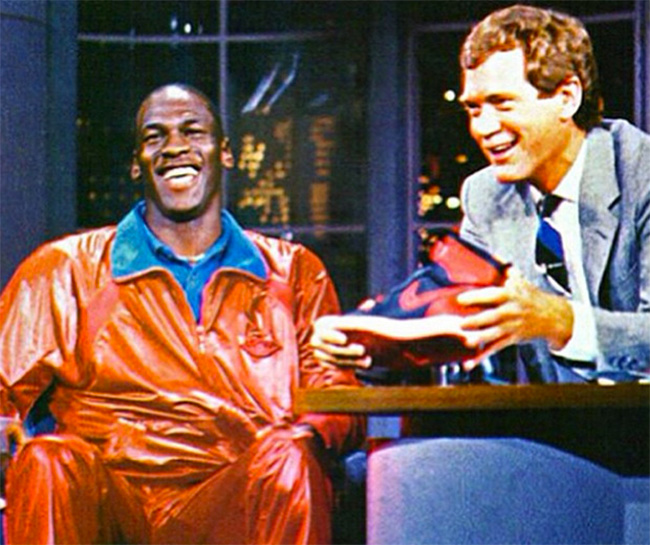 在这场刚好 30 周年的比赛之后,年仅 23 岁的 Michael Jordan 参加了 David Letterman 的访谈节目,在谈笑风生之间,也谈及了刚刚面世不久的 Air Jordan 1,双方都调侃这双球鞋很丑(ugly)。