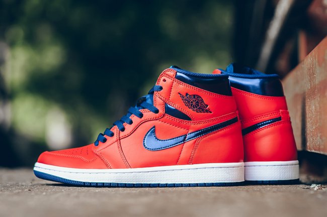 以亮红皮革打造鞋身主体,Swoosh、鞋舌和鞋帮则以深海军蓝呈现,漆皮材质在细节上的装饰,带来光泽凸显,为整体添加了更多的层次感和视觉亮点。
