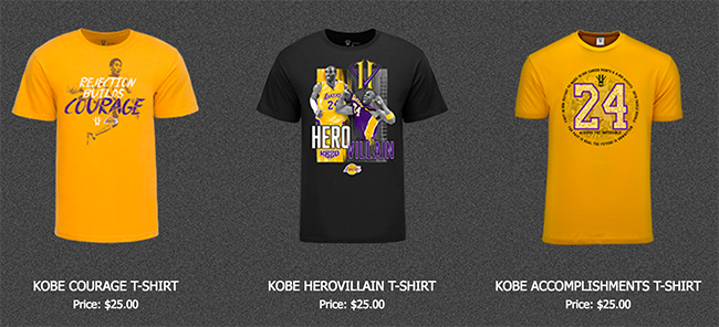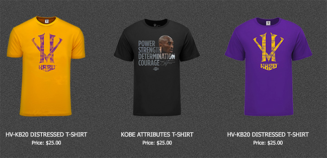 目前这一标识也成为了科比官方网站(kobebryant.com)的视觉主线,网站的主标识就是该 Logo。在该网站上有丰富的科比周边产品在售卖,除了刚刚提到的限量球星卡,相关服饰自然是粉丝们疯抢的单品。