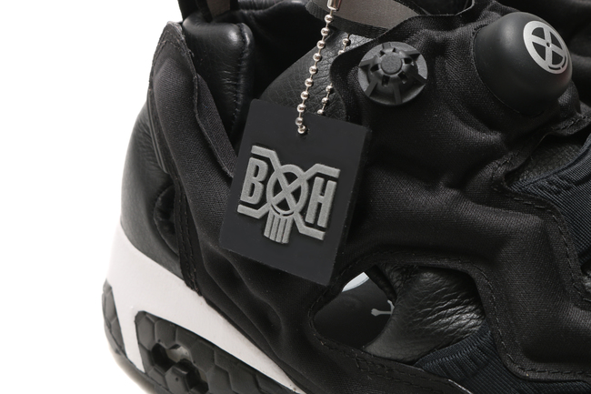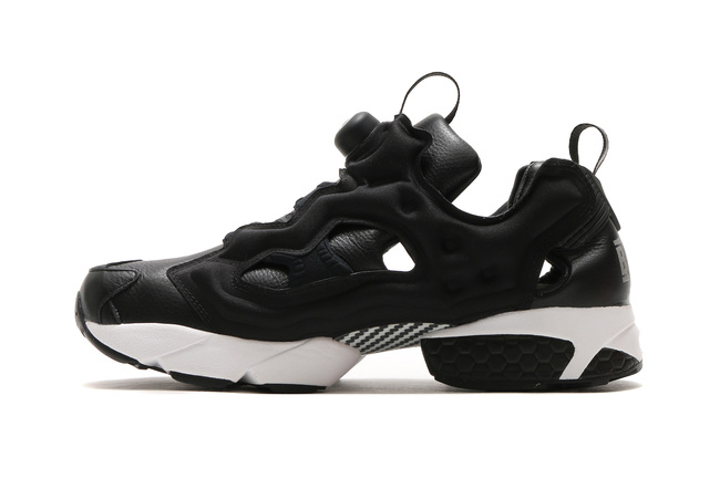 新泽西 Packer Shoes 携手日本知名店铺 atmos,同时邀请了日本时尚品牌 Bounty Hunter,在 Pump Fury 鞋型上选用黑色的优质皮革,细节则以 Bounty Hunter 的经典元素注入。