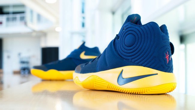 以抢眼的黄色鞋底托衬海军蓝鞋身,辨识度极高的骑士队配色,欧文的赛场上脚则已经为我们展现了其不凡的霸气外露。