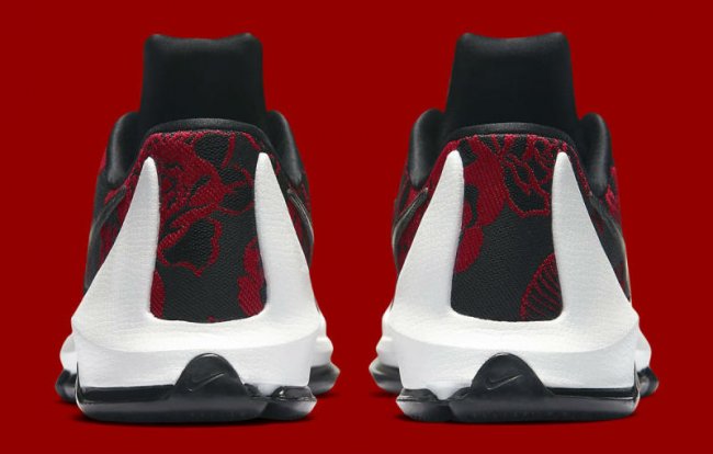 杜兰特八代战靴终于迎来了 Floral 花卉主题的亮相,此番在 KD 8 EXT 鞋型上以黑红色调带来这双 KD 8 EXT “Floral Finish”。 相比于 Floral 配色的前作 KD 7 EXT Floral,这双八代新品在色彩的搭配上更为简化,仅仅使用了黑色和红色作为主色调呈现。少了缤纷多彩的夺目效果,更多的以内敛和沉稳以彰显其低调姿态。 将于 5 月 7 日正式发售,售价为 $200 美元。 货号:806393-004 发售日期:5 月 7 日