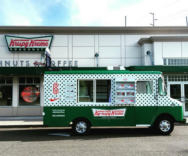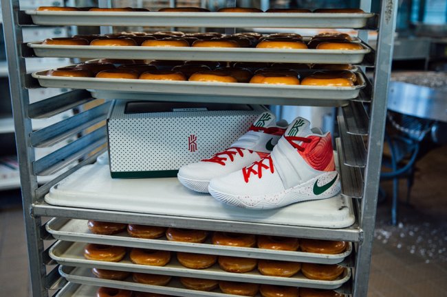 Kyrie 2 “Ky-rispy Kreme” 以白色鞋身为背景,细节的明亮色系装饰则营造了十足的活力效果。将以 Krispy Kreme 售卖卡车为主题,从克利夫兰开始巡回活动,5 月 10 日和 13 日开始第一站。
