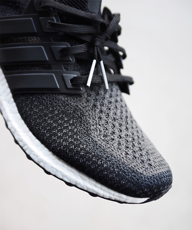 随着 Ultra Boost 日益深入到潮流人士的日常穿搭之中,我们也越来越多的在街头看到了运动和时尚风范都十足的精致上脚。 眼前这双 adidas Ultra Boost “Black Gradient” 以黑色 Primeknit 编织鞋身搭配白色 Boost 中底,但在细节之处又以渐变编织效果呈现,在黑白简约双色的利落大方之上,又注入了一丝精致。
