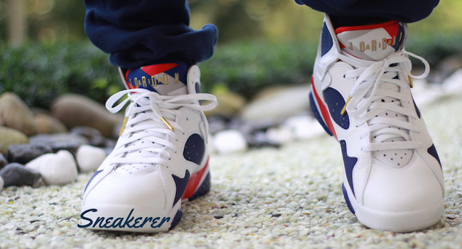 人气颇高的奥运配色 Air Jordan 7 在里约奥运之年迎来改头换面的全新进化,此番由 Tinker Hatfield 操刀主持,在 Air Jordan 7 鞋型上以熟悉的白蓝红金搭配,继续为我们呈现了一款细腻精致的 USA 金牌配色。