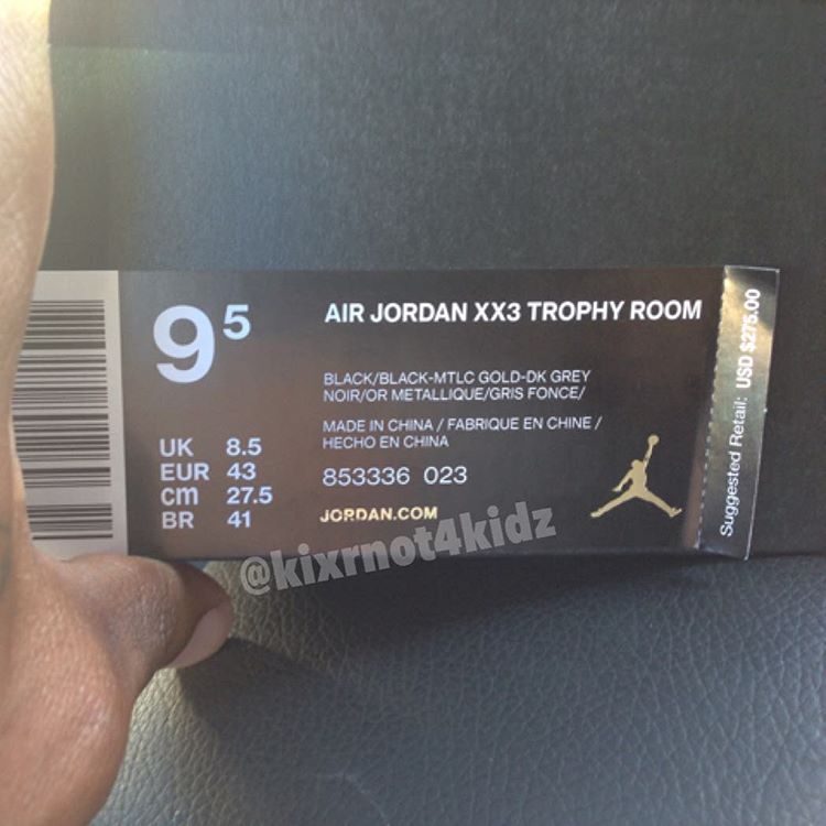 Marcus Jordan 的球鞋店 Trophy Room 将于本月 23 日正式开张,无疑将给 Sneaker 球鞋圈增加一个全新的朝圣之地。 眼前这双 Air Jordan XX3 “Trophy Room” 就表明了这家球鞋店的不凡之处!鞋垫上的店铺 Logo 和鞋盒上的货品名称已经表明了其专属身份。货号和售价都一应俱全,售价高达 $275 美元,不知是否有市售的可能! 货号:853336-023