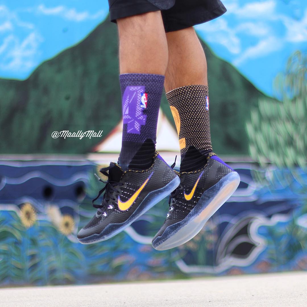 即将发售的这款 Kobe 11 EM “Carpe Diem” 以浓浓的湖人气息和科比元素,在发售前颇受好评。而 Carpe Diem 来源于 ZK4 的经典配色装扮,翻译为“及时行乐”或者“只争朝夕”的含义。 开放性的网眼 EM 鞋面辅以动态飞线,Lunarlon 中底则为穿着提供了良好的缓震表现。 黑色鞋身背景之下,以黄色和紫色细节注入,营造了浓浓的湖人队氛围,左鞋后跟呈现了红色的四条杠伤疤,右鞋则展现了科比的签名。 货号:836183-015 发售日期:5 月 21 日