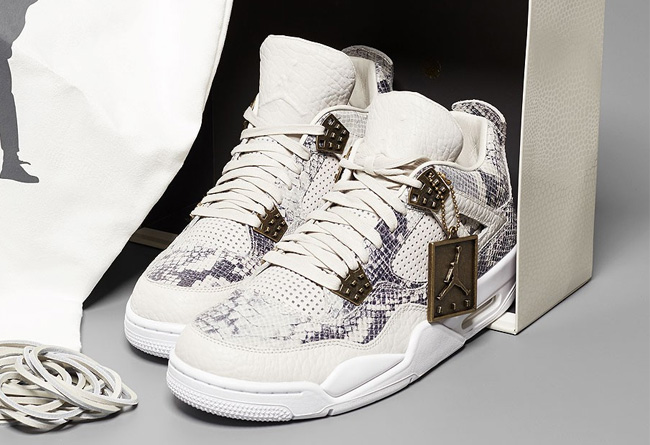 本周六即将迎来 Air Jordan 4 Premium 第二配色的发售,首款黑白配色有了比宝 Justin Bieber 的亲着演示,这双蛇皮纹理装饰的第二配色自然也以不输给前者的奢华气质呈现。