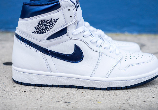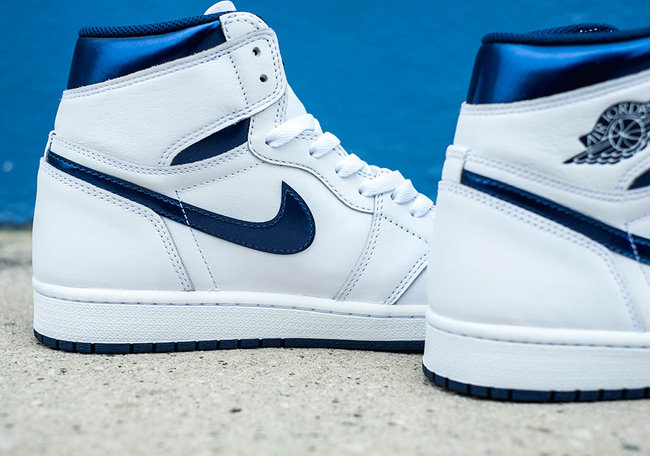 这双 Air Jordan 1 Retro OG High “Metallic Navy” 以该系列常见的白色皮革鞋身点缀海军蓝细节,蓝色部分以漆皮的光泽呈现,在浓浓的复古运动风范之下,又有颇具层次感受的亮点闪现。