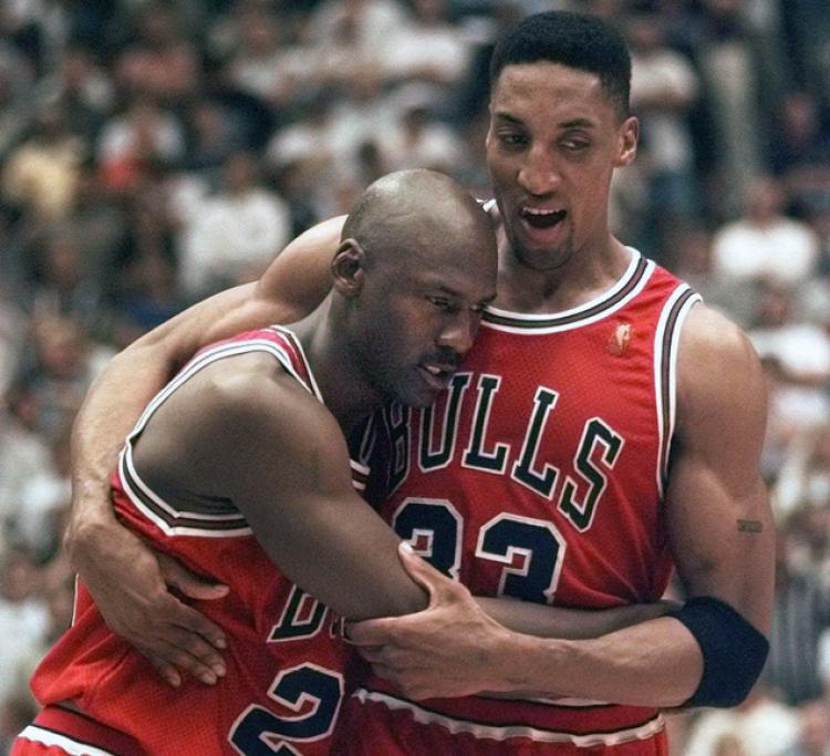 终场前的最后一次暂停,拼尽全力的乔丹已经虚弱到连走向替补席都十分困难,皮蓬搀扶他下场的一幕令无数球迷为之动容。