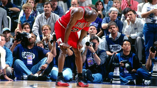 在几乎虚脱的状况下,乔丹带病上阵,整整打了 44 分钟,砍下 38 分,第二节和关键的第四节分别得到 17 分和 15 分,并在比赛终场前 25 秒,以一记致胜的三分球,帮助公牛 90-88 力克爵士队,率先到达总决赛赛点。