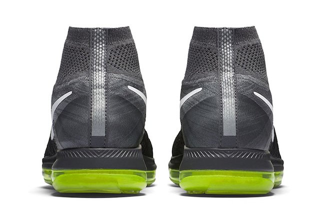 全新的跑鞋型号 Nike Zoom All Out Flyknit 一经曝光并收获了极高的关注度,融合了篮球鞋、足球鞋的新款跑鞋,带来三合一的独特感受! Flyknit 编织鞋身以及袜套设计,已经有浓浓的 Nike FC 味道了,而全掌的 Zoom Air 可视化气垫则颇为惊艳,想必上脚感受必定不凡! 目前尚未公布发售日期,不过又有一款全新的黑灰配色发布,浓浓的潮流味道,加上荧光绿外底的托衬,在视觉上已经得到了高分!