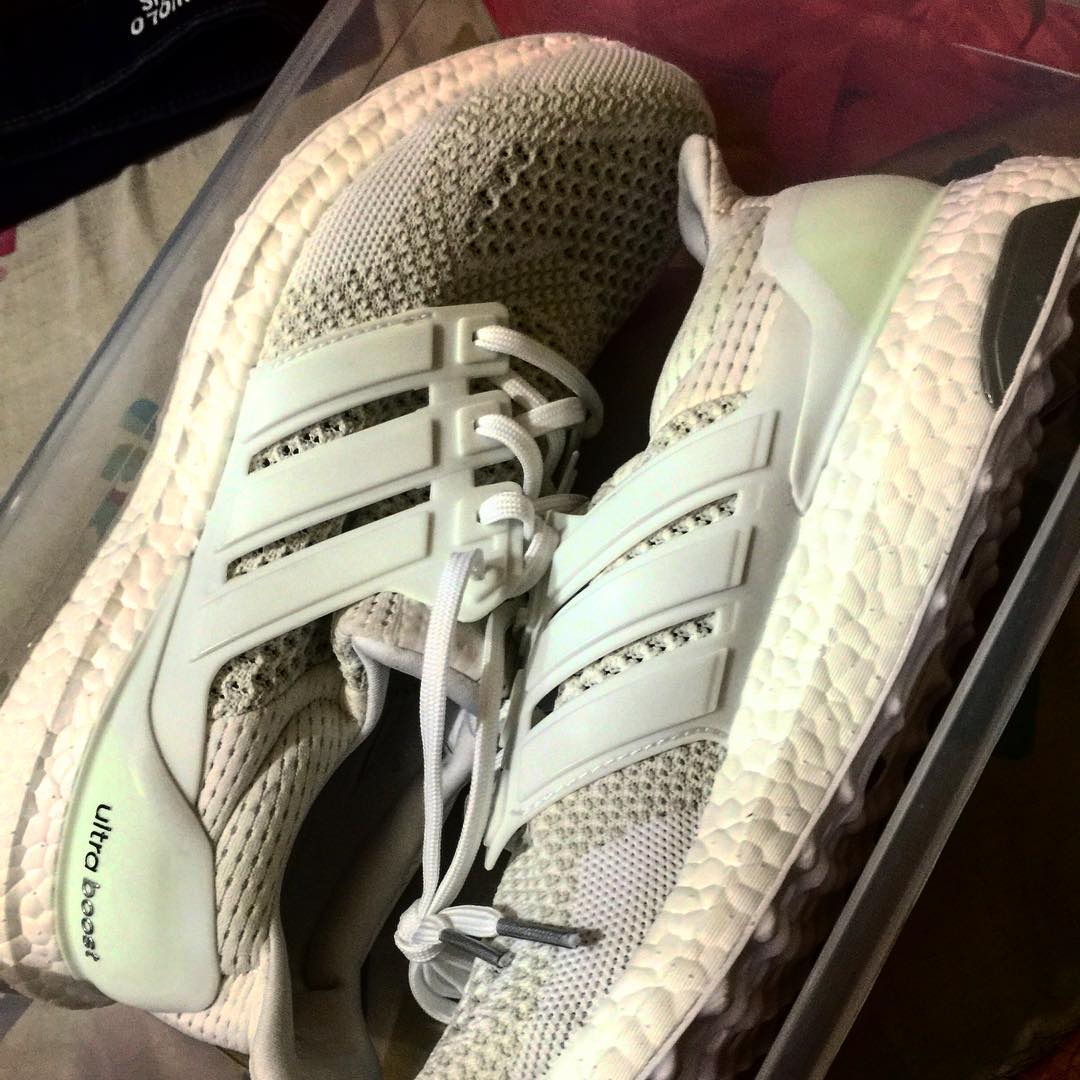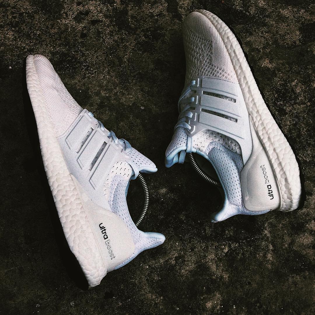 但其实鞋楦真的是球鞋爱好者在平日里储存鞋子的必备法宝,鞋楦能够极好的保持球鞋的形状饱满,避免因为不穿或者压迫而变得变形或者塌陷,以一双纯白的Ultra Boost 为例我们可以直观的看到鞋楦在鞋身各个位置的强大塑形效果: