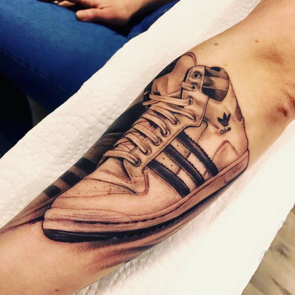 球鞋纹身纹身是Sneakerheads的标准配备,将心爱的球鞋纹在身上更是完全表达了对球鞋的热爱,如同爱人一般的随时陪伴,与自己融为一体,向老司机致敬!