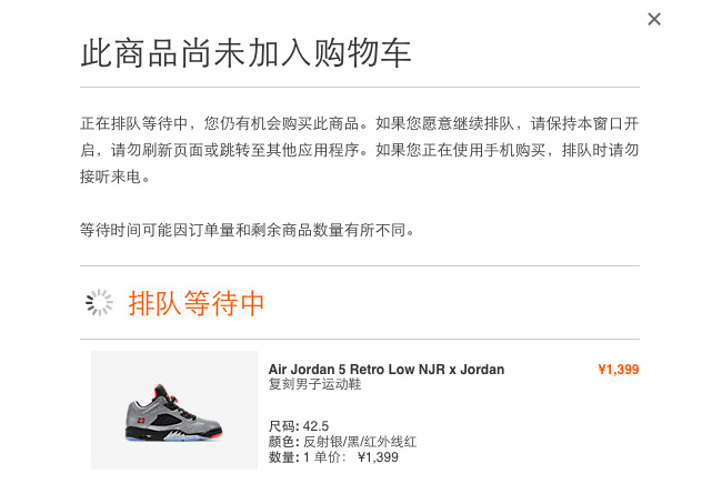 -- UPDATE 10:08 男女款均已售罄,见下图。看来人气极高货量却不多,而小编还在排队中... 内马尔联名的 Air Jordan 5 Low “Neymar” 现已登陆中国区 Nike.com 官网,男女款都已上架,发售价为 ¥1399 和 ¥999,点击查看全系列详情。