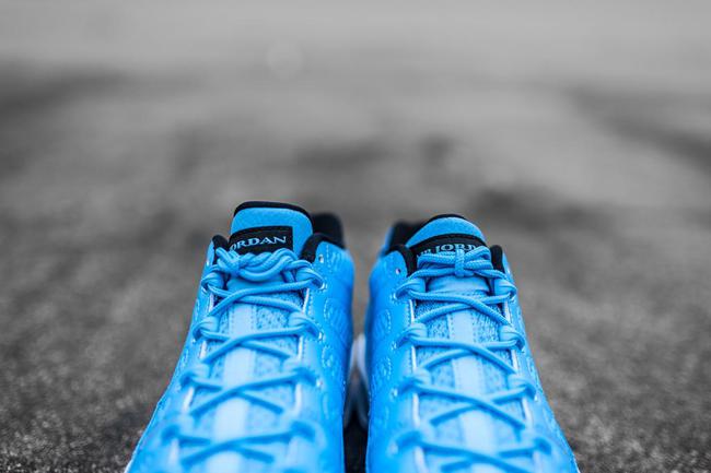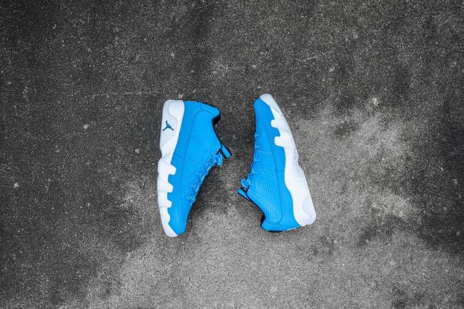 这双 Air Jordan 9 Low “Pantone” 以纯正的北卡蓝装扮呈现,蓝色的鞋身的精致纹理带来细腻的视觉体验,后跟则以经典的九代圆标呈现,白色刺绣数字 23,以及白色中底的蓝色 Jumpman Logo 点缀都颇具抢眼效果,飞人气息也异常浓厚。