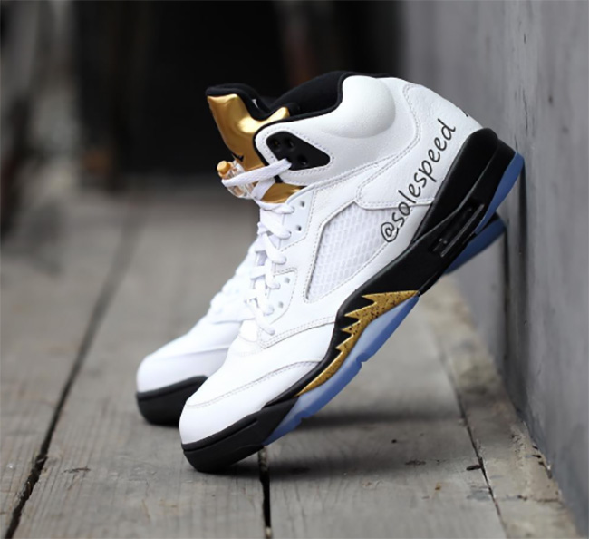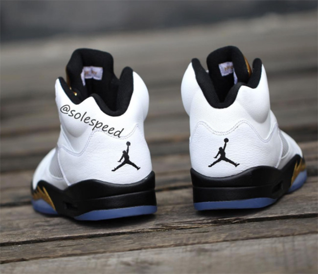 除了黑银经典配色的完美回归,Air Jordan 5 五代鞋型还将在今年带来多款奥运主题的全新配色,眼前这双 Air Jordan 5 “Olympic” 就烘托了浓浓的金牌荣耀氛围。