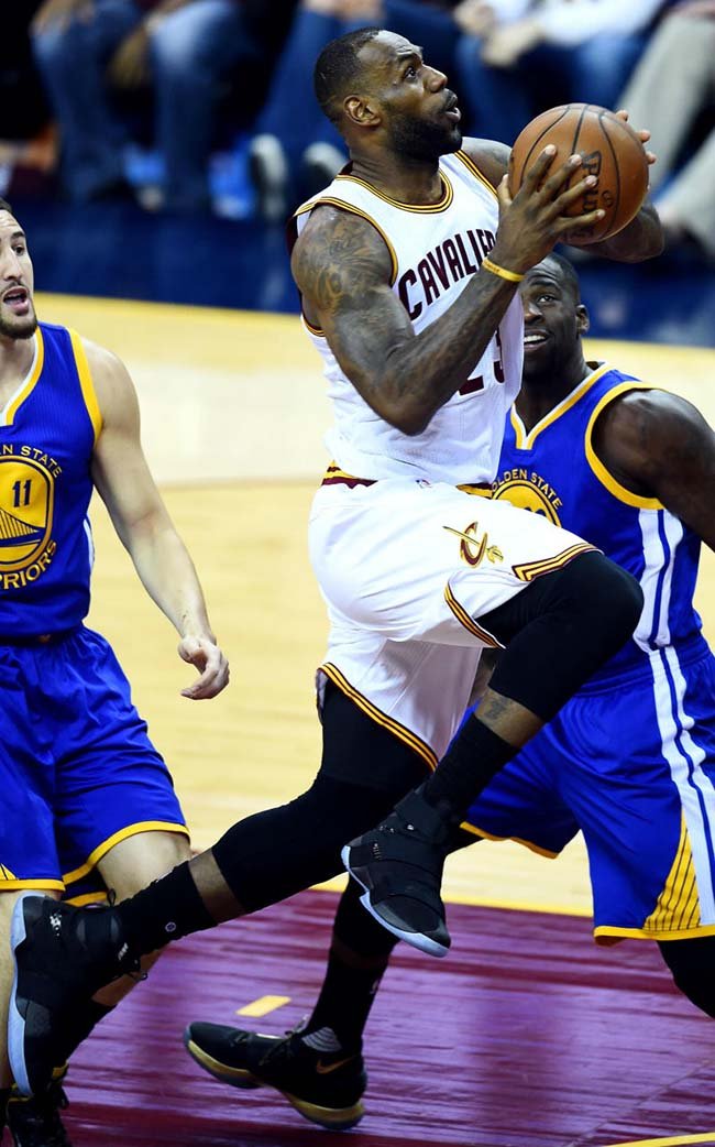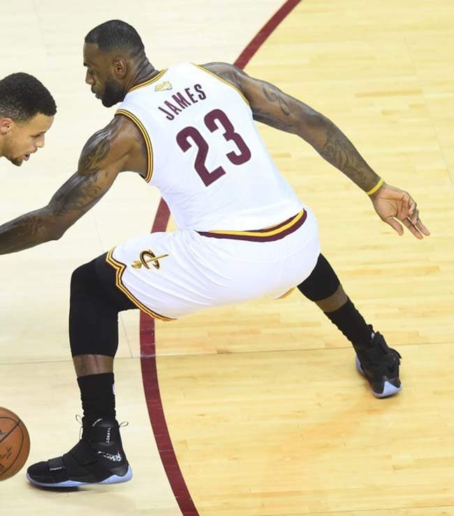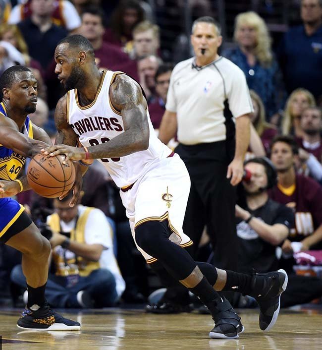 今天骑士队迎来本次总决赛系列赛的首个主场,开局势头极旺!第一节结束就拿下了 33 分!同勇士的分差 17 分。 詹姆斯则上脚了全新的士兵十代,这双 Nike LeBron Soldier 10 采用了全黑鞋身搭载蓝水晶外底,而鞋身上带有詹姆斯自己写下的英文,你能看出是什么吗?
