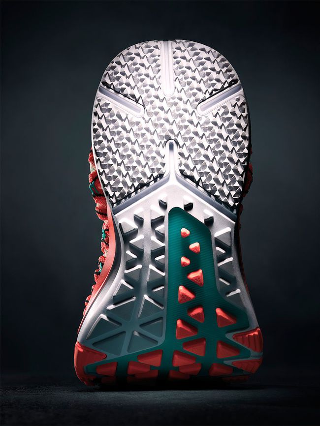 在鞋底方案上则带来了 Flex Speed 平台的全新亮相,外底上以分离的钻石单元分布,带来稳定和缓震的完美支持,为高速和激烈的运动提供更为全面的支撑。