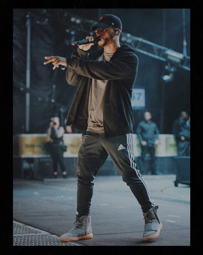 带来本周的海外明星球鞋上脚,新款发售的 Yeezy 750 Boost Light Grey 自然是本次的亮点,侃爷在舞台上也带来了团队演示。一睹为快吧!