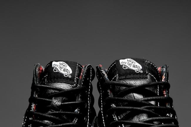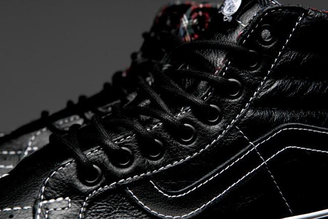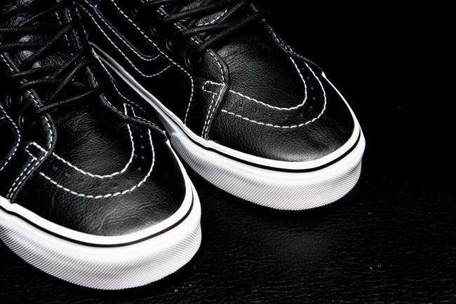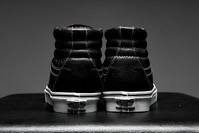 而除了 MMJ 联名,Vans 在此季还推出了另外一款黑色皮革鞋身的 Sk8-Hi Reissue。
