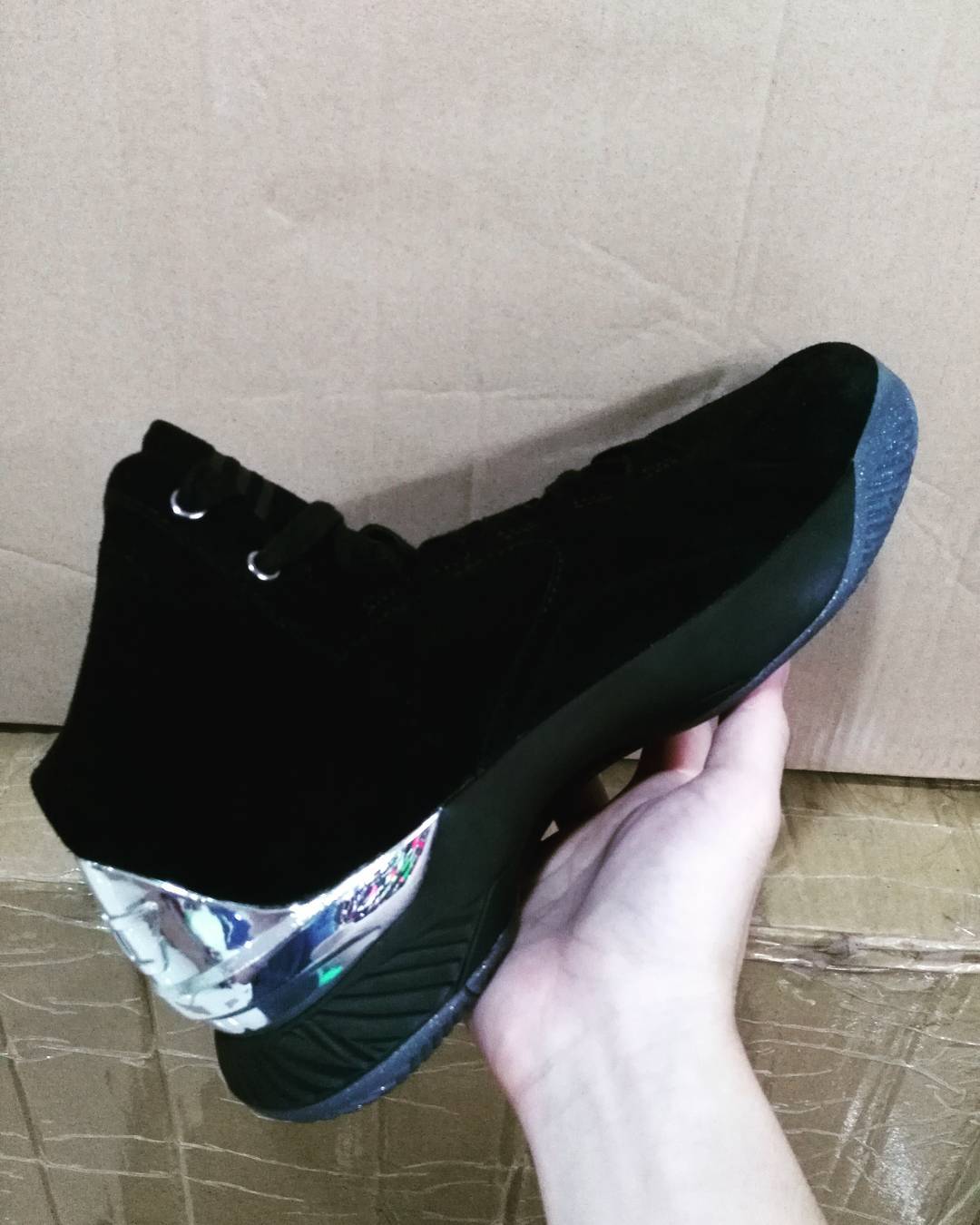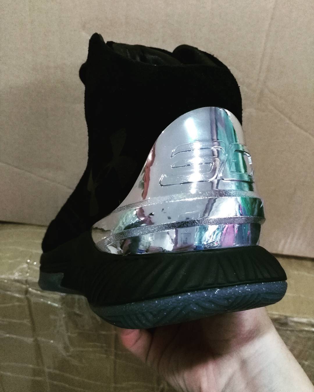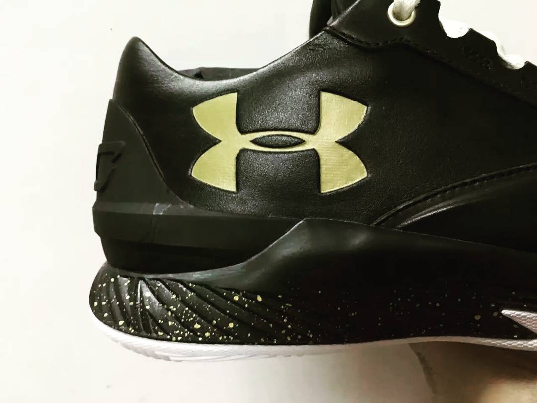 从鞋身和鞋底的样式来看,采用了 Under Armour Curry 1 和低帮的 Curry 1 Low 作为原型,低帮鞋型以皮革鞋身点缀金色的 UA Logo,黑色中底的金色泼墨也极为抢眼。