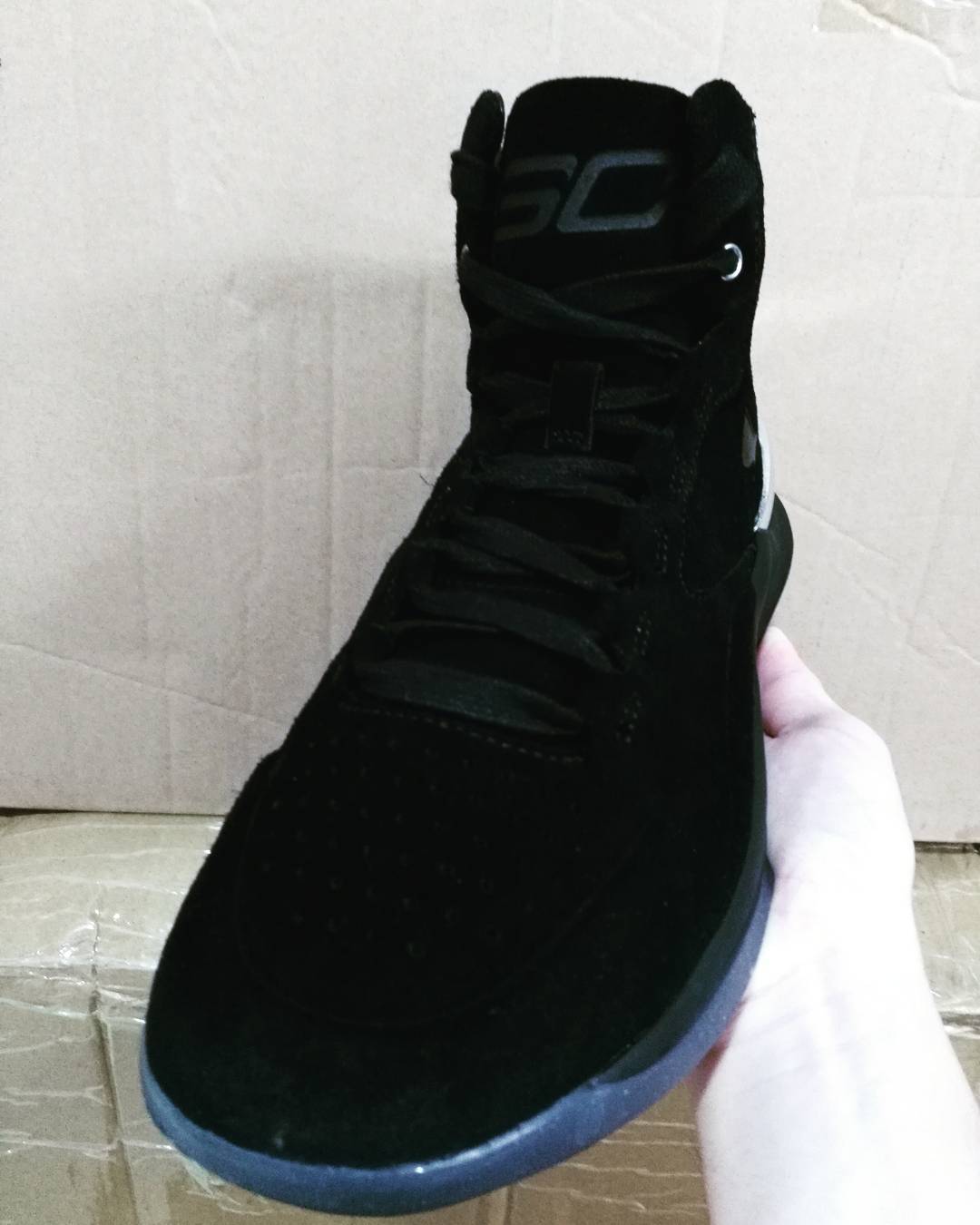 而高帮版本看起来采用了黑色牛巴革打造,后跟以金属铬光泽的稳定片包裹,呈现了 SC 字样,在低调的尽显质感魅力之余,亮光闪闪的后跟装扮则抢眼非凡!内衬也采用了皮革制成。