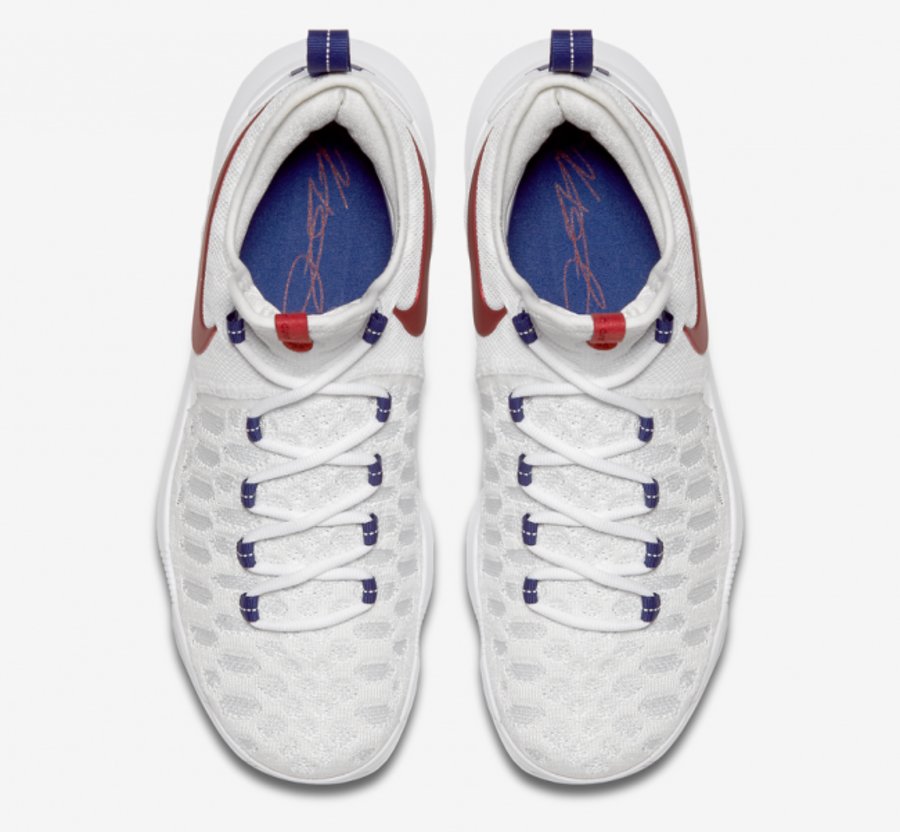 杜兰特的第 9 代战靴即将正式发售,在他是否会留在雷霆的话题讨论激烈之时,KD 9 的全新登场倒是让注意力有所转移,特别是眼前这双 USA 美国配色。 KD 9 “USA” 将于 6 月 27 日正式发售,以清爽的白色 Flyknit 鞋身搭配蓝红双色,带来熟悉的常规 USA 装扮。极其的简单明了、活力满满!而杜兰特是否会在出征里约的赛场上上脚,也颇值得期待! 货号:843392-160 发售日期:6 月 27 日