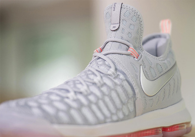 KD 已在季后赛中多次上脚 Nike KD 9,虽然并没有将球队带到总决赛的赛场上,但已经使这一双 KD 9 备受 sneakerhead 关注。本次即将要在 6 月 20 日发售的是 Nike KD9 LMTD “Pre-Heat”,搭载的正正就是 sneakerhead 期待已久的 Wolf Grey 狼灰配色的 Flyknit 鞋面,侧面银色 Swoosh 相得益彰,红色 Zoom Air 与半透明外底的点缀,让整双鞋具有更多的潮流元素。