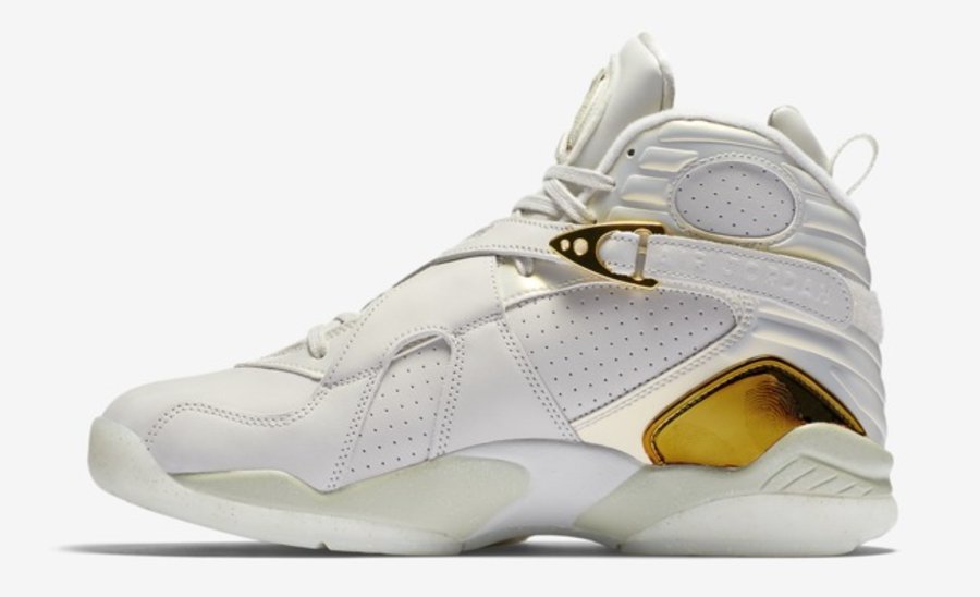 Air Jordan 8 “Champagne” 香槟配色以白金装扮带来浓浓的荣耀气质,白色贯穿,完美展现了 Air Jordan 8 那厚实的安全感,而鞋帮挡泥板、绑带扣和鞋舌的 Jumpman Logo 采用了金色打造,还不经意间呈现了 Michael Jordan 的指纹,张弛有度的带来一款绝无仅有的白金精品!