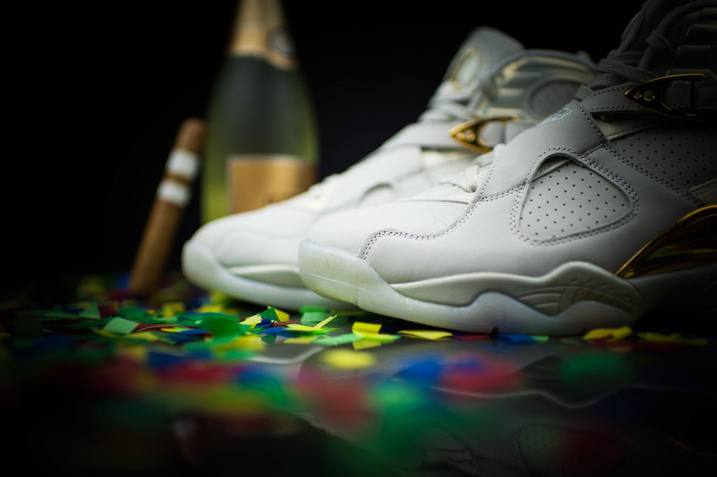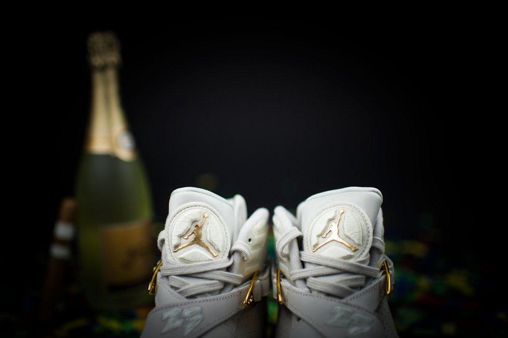 以浅骨色鞋身装点了华丽感受十足的金色细节,金属质感的流光溢彩,加上 MJ 指纹元素的融入,在 Air Jordan 8 厚实的鞋身上呈现了一款精致佳品!