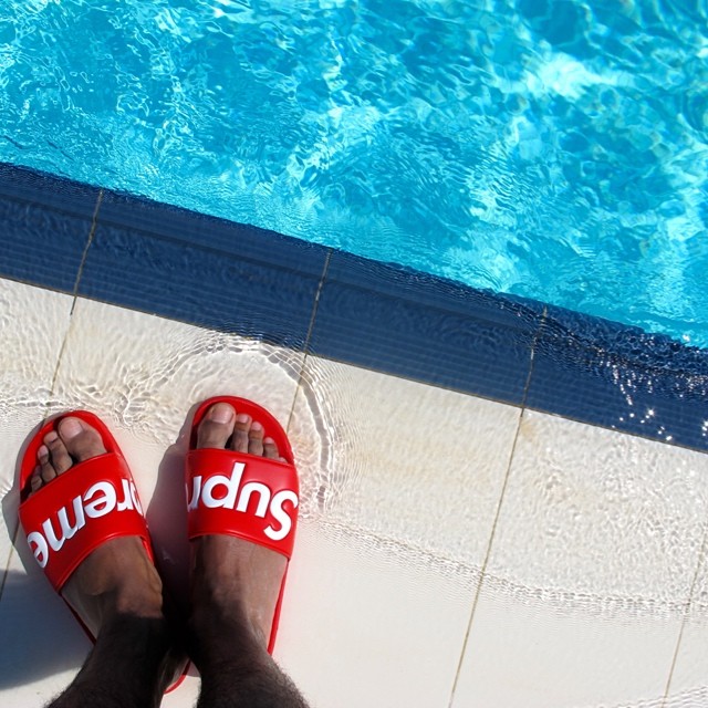 Supreme 的拖鞋虽好看,入市需谨慎。在 Supreme 假货称霸的今天,能买到一双让人放心的正品简直比登天还难。这双拖鞋红黑双色张扬而有活力,实在是横行接头的不二之选。