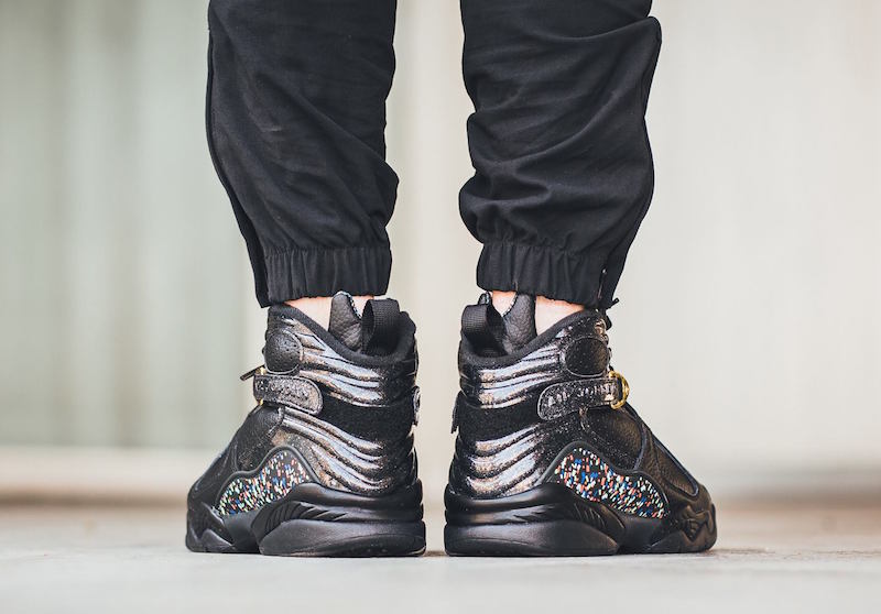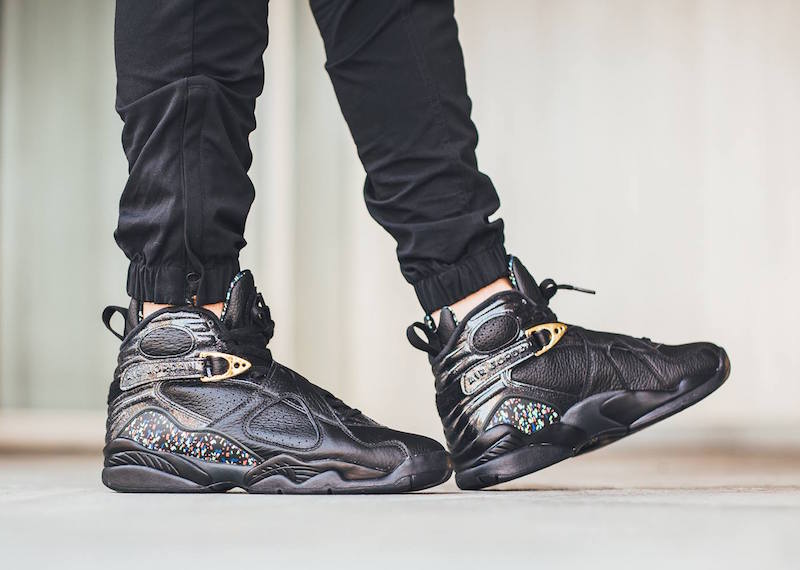 白金和黑金的 Air Jordan 8 C&C 冠军套装今天正式发售,中国区也迎来了两款配色的同时登场,除了小猪罗志祥在之前的上脚演示,我们带来更多的上脚实拍。 这一次在雪茄香槟主题的基础之上,又融入了五彩纸屑的庆典元素,不仅再现了热烈非凡的冠军庆祝场面,更为精致和细腻的细节表现,也为三连冠套装注入了更为完美的亮点。 货号:832821-004/832821-030 发售价:¥1699